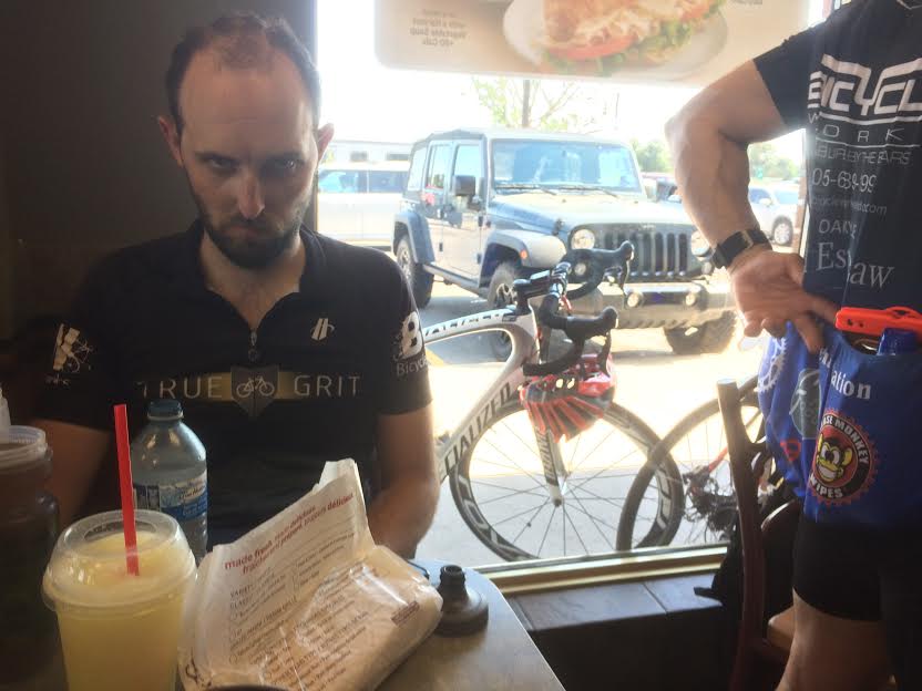 At around 30kms in we hit the first aid station to refuel and refill water bottles...again the stations so well stocked to keep riders going...mixed nu-un for electrolytes, water, ice, and all varieties of food and snacks. Then somewhere after aid station 1 Blaze got Blaingry.